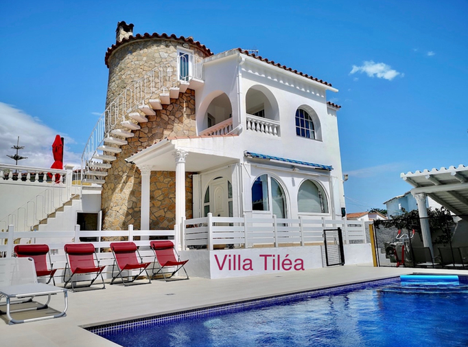 LOVELEY 4 BEDROOM TWO-STOREY (145m²) „VILLA TILEA“ FOR 9-10 SLEEPS WITH PRIVATE HEATED SWIMMING POOL, WIFI (GLASS FIBRE), SATELLITE TV, COVERED TERRACE + EXTERIOR KITCHEN, IN THE SECTOR MONTGRI/EMPURIABRAVA